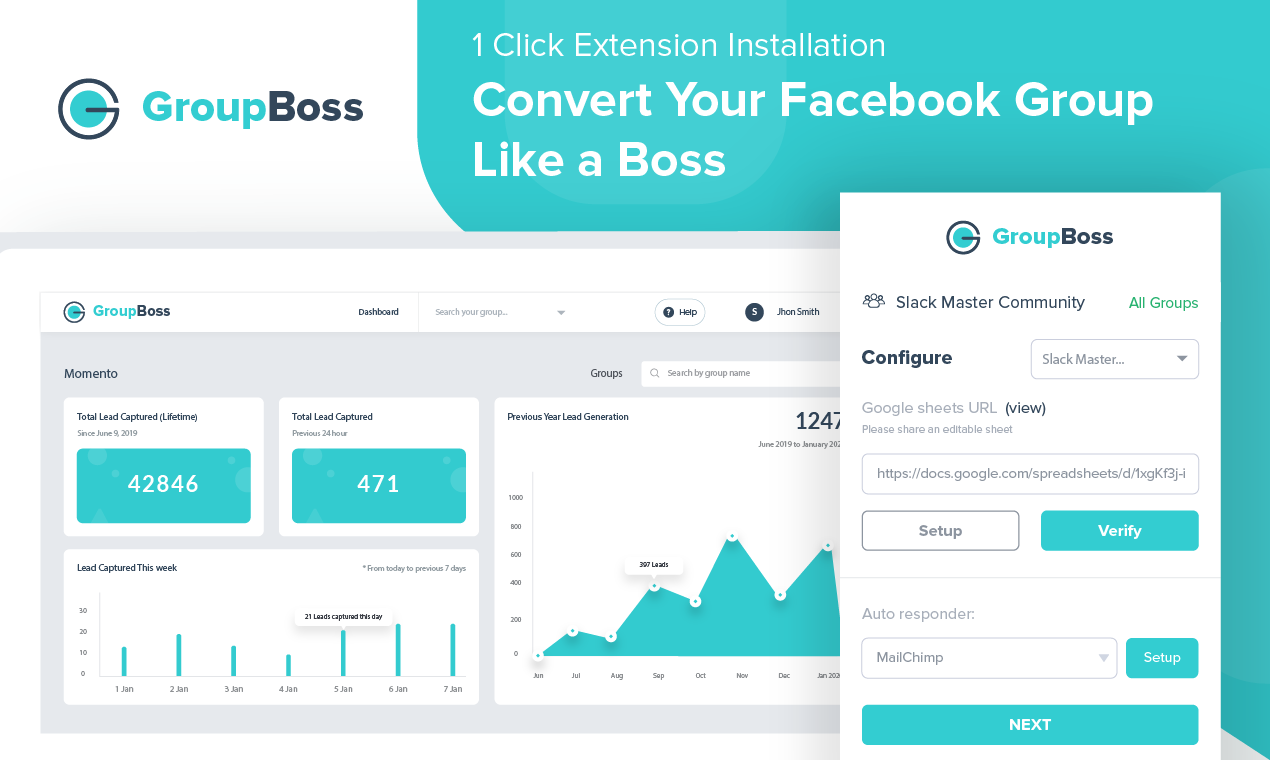 Groupboss is a Facebook group automation tool that helps Facebook group admins collect unlimited leads. Using this tool any group owner can collect the answers to the Facebook group membership questions asked to the new members with a single click. It has direct integrations with popular email marketing autoresponders like Mailchimp, ActiveCampaign, Lemlist and many more.