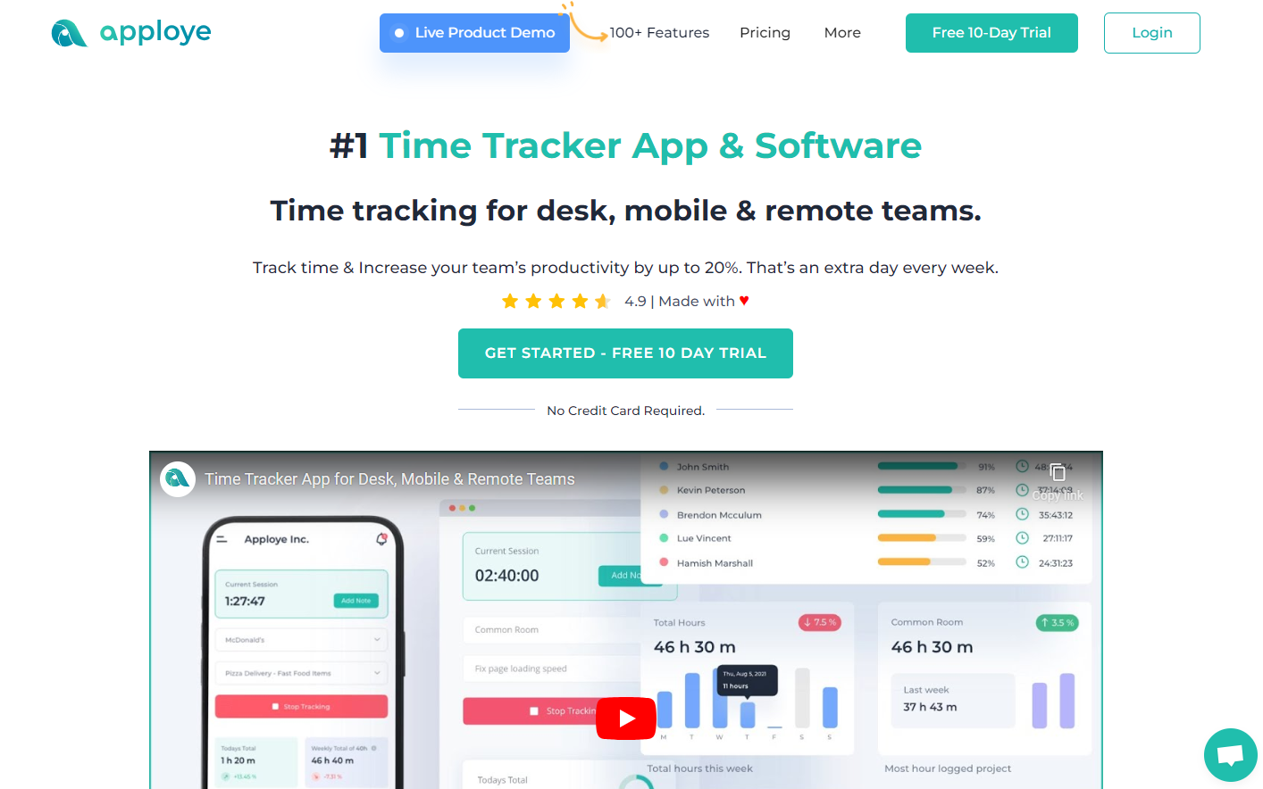Apploye is an employee monitoring and time tracking software for businesses, enabling them to effectively manage their in-house, and remote teams from one central dashboard. Apploye includes features such as timesheet, screenshots, app, URL tracking, activity levels, payroll, invoicing, scheduling, team, projects & budgets, shift management, attendance, and GPS location tracking. It is suitable for small to large businesses, especially for remote teams.