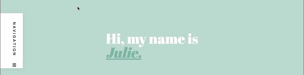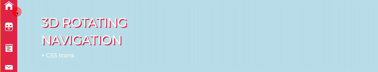 This navigation bar adopts a unique side design, and when users hover over an icon on the menu, a rotating effect will appear, and the icons will rotate and transform into text. The overall design and animation are very advanced and unique.