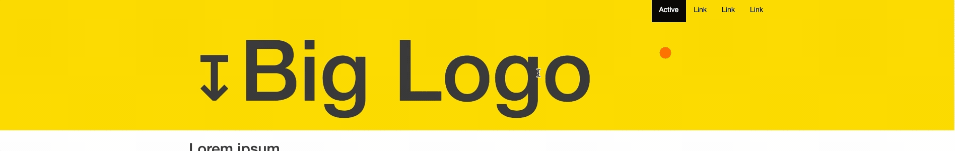 This navigation bar features a striking yellow color on the first screen, with a large logo on the left side. When scrolling down, the large logo transforms into a smaller one, and the yellow background color changes to blue, making the page more vibrant and interesting, and drawing users' attention.