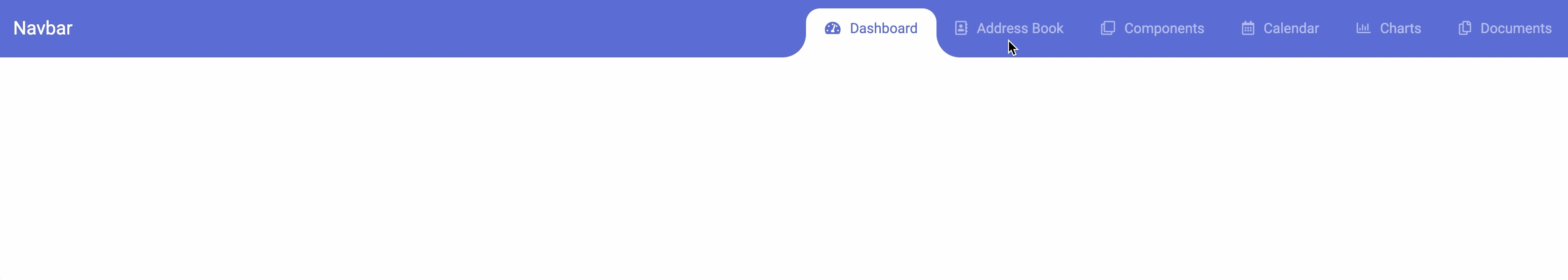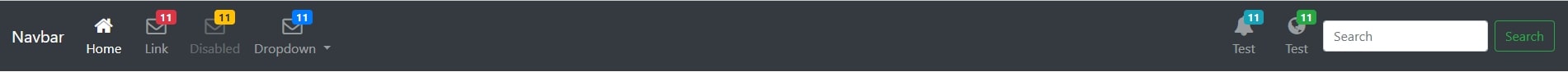 This Bootstrap 4 navbar template features on icons with top bubble tips. It contains three kinds of visual elements, including icons with text, search bar, and drop-down menu. With a black background, the white texts, icons, and bubbles with gradient colors are quite impressive for users.