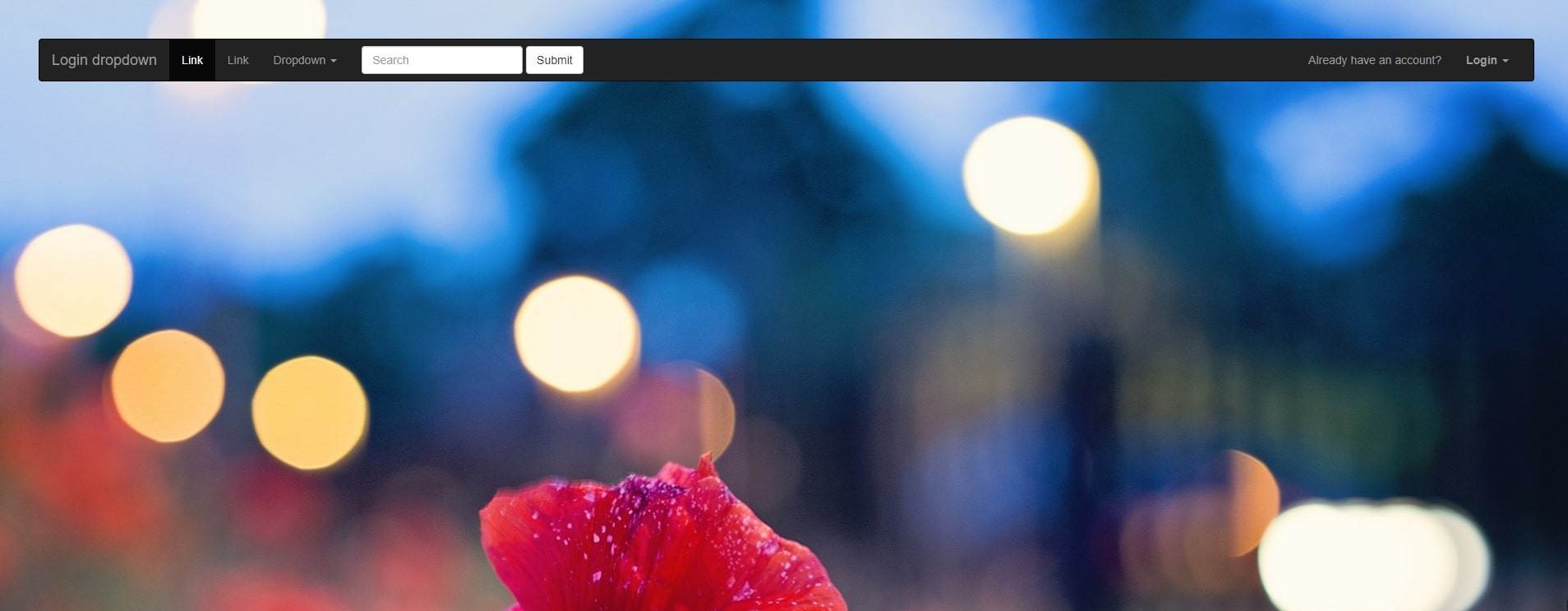 Login and register buttons are one of the most important design elements of a web page. This template provides an idea on how to embed the login and registration buttons in the navigation bar. The login and register panel gets hidden in a drop-down menu to save space on the top bar.