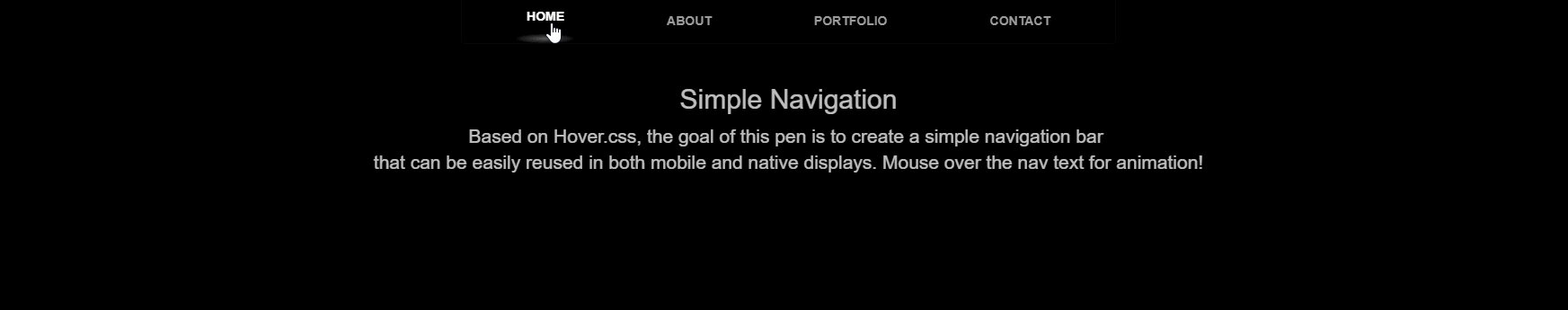 This navigation bar has a simple design and animation. The background is solid color with simple text. When the mouse hovers over the text, a selected line animation appears at the top.