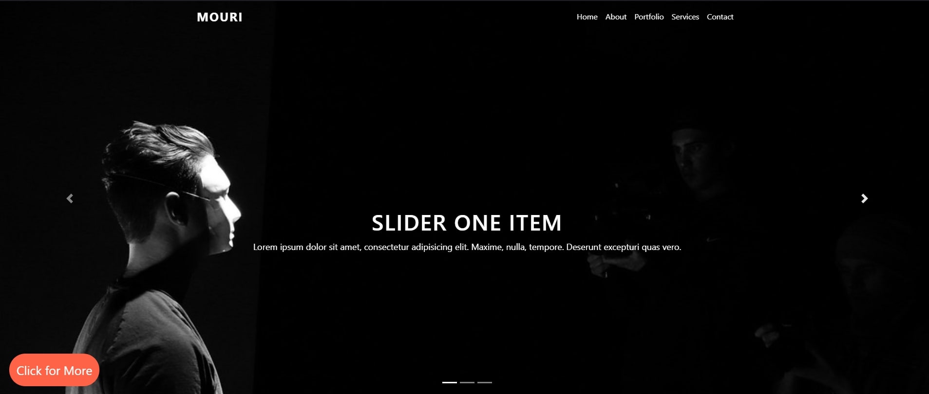 Another transparent navigation bar differs from the template 7 with a responsive design. The pre-set animation will appear when you scroll down the page, and the navigation bar will turn to a fixed bar with a dark background simultaneously. It is suitable for business, education, and personal profile website.