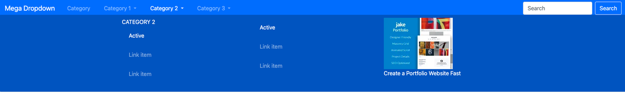 If you want to feature both text and image content in the navigation bar. This is it. This template customizes the navbar to have a full width dropdown menu for certain nav items with images, which can present even more content and make navigation more powerful.