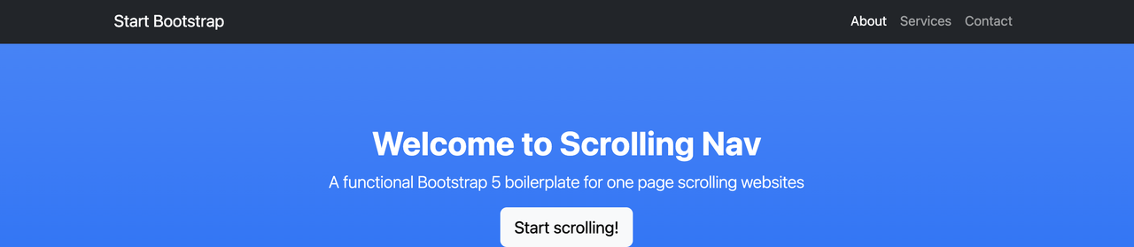 This is a scrolling navigation bar template with a simple style. It' purposefully unstyled, so you can customize it as any style for a landing page. The clickable links allow a smooth scroll, and the scroll spy feature can highlight where you are on the navbar. Also, as a responsive one-page design, it could perfectly fit on any device with different sizes.
