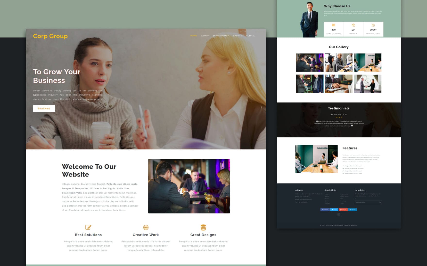 Corp Group is a free website template built with HTML & CSS on Bootstrap. This web template is perfect for corporate businesses, agencies and similar businesses looking for a stunning web presence.