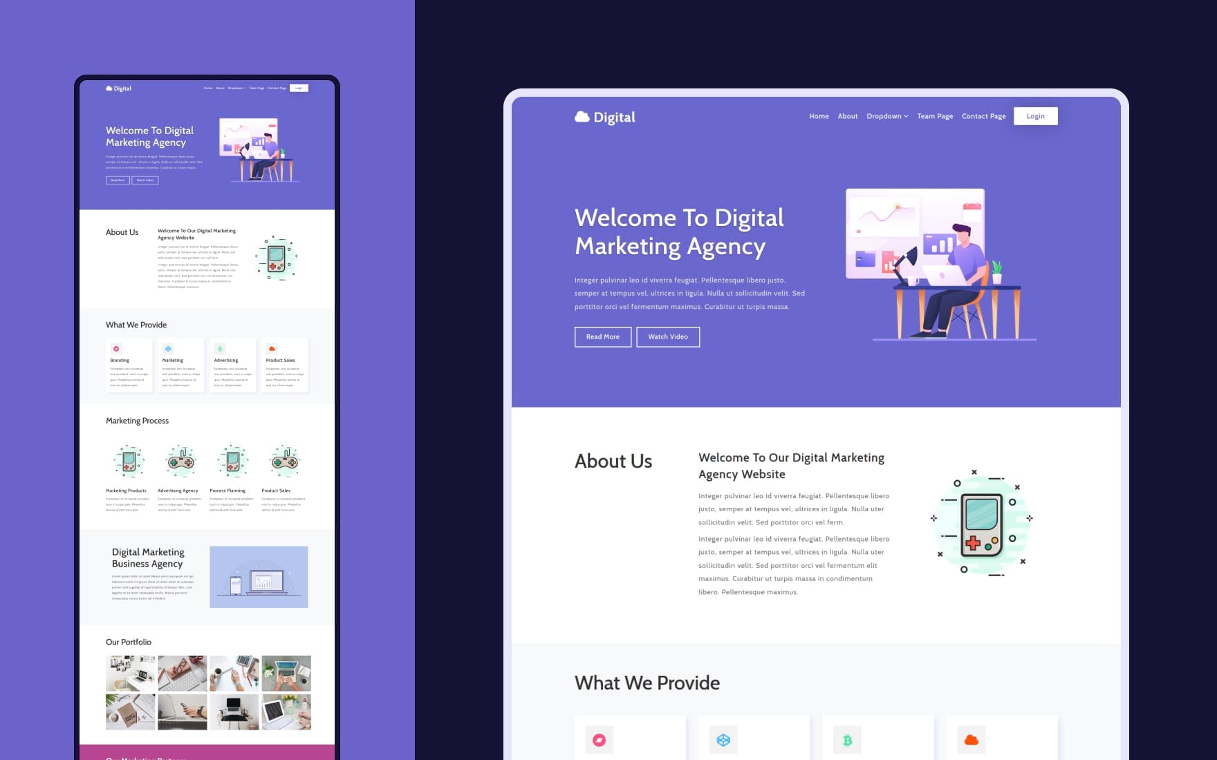 DGital is a well-crafted, creative, and modern designed free digital agency HTML template suited for startup digital agencies, SEO agencies, graphics design firms, creative agencies, web design & development agencies, online marketing agencies, SEO services providers, content marketing, consulting & financial agencies, and all other internet marketing and services related agencies and businesses.