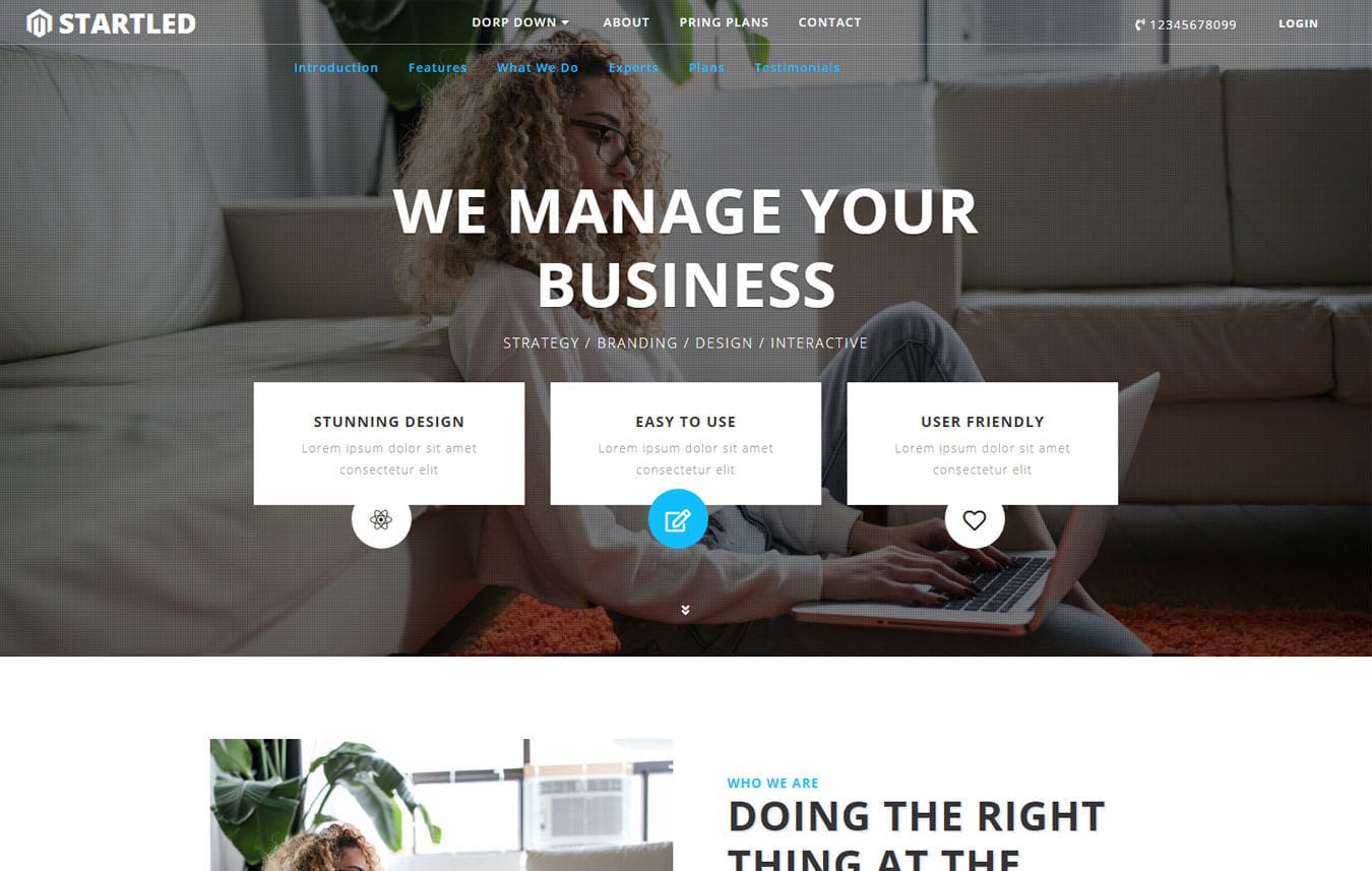 Startled is a multipurpose Business website template designed especially for creative business websites. It is really versatile since it can fit for any type of brand and company like Corporate, business, agency, freelancers, designers, entrepreneurs, web studios, promoting your services, consulting business and much more.
