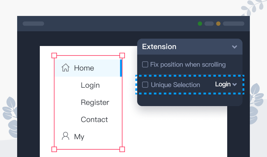 While reusing an Auto-sync assets, like Navigation Menus or Vertical Menus asset, you can now enable "Unique Selection" to select an item and make it different from other instances, the parent items of the selected item is also automatically expanded.