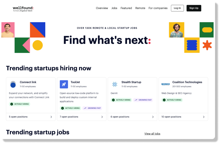 Wellfound, previously known as Angel.co, offers exclusive access to a vast array of job opportunities that are not readily available elsewhere. With over 130,000 remote and local jobs listed, from top companies to fast-growing startups, freelancers can efficiently search for projects that align with their interests and skills.