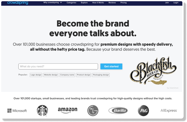 This is a design contest platform founded in 2008. CrowdSpring brings something special to the table that traditional agencies and freelance platforms don't: a whole world of creativity in one place. Over 220000 creative freelance professionals from 195 countries are working on CrowdSpring, especially in fields like logo design, business card design, web design, graphics, packaging design, product design, email templates, and many other design works. Clients set their price, lay out their vision and post up a design contest, then freelancers from all over the world can submit their work. Eventually, the client will award the prize money to the freelancer who has the best idea or design.