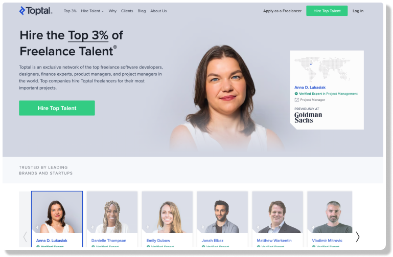Toptal is a freelancer platform made up of the world's best freelance developers, designers, financial professionals, product managers, etc. It's one of the top choices for both entry-level and experienced UX designers seeking high-paying and consistent freelance opportunities. TopTal pairs freelancers with clients and projects tailored to their respective preferences outlined in their profiles. It also categorizes job postings into hourly, part-time, or full-time positions, offering flexibility in working arrangements. Payments are made regularly, typically on a monthly basis, and processed securely through direct deposit via Toptal.