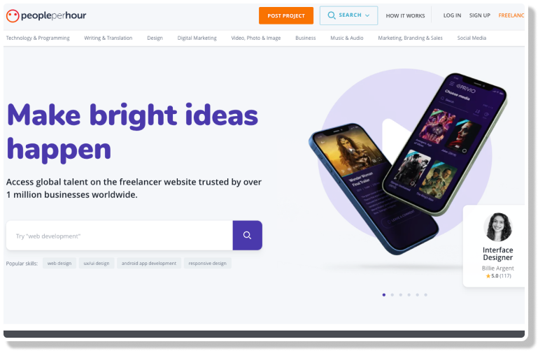 PeoplePerHour is a UK-based freelance platform. It stands out by positioning itself as a platform that pairs top clients with the best freelance talent, utilizing AI to ensure optimal project matches. Freelancers can submiit their proposal and set their prices, meanwhile clients can choose from a range of proposals, streamlining the selection process. With an integrated payment system, PeoplePerHour minimizes payment disputes, enhancing the user experience for both parties.