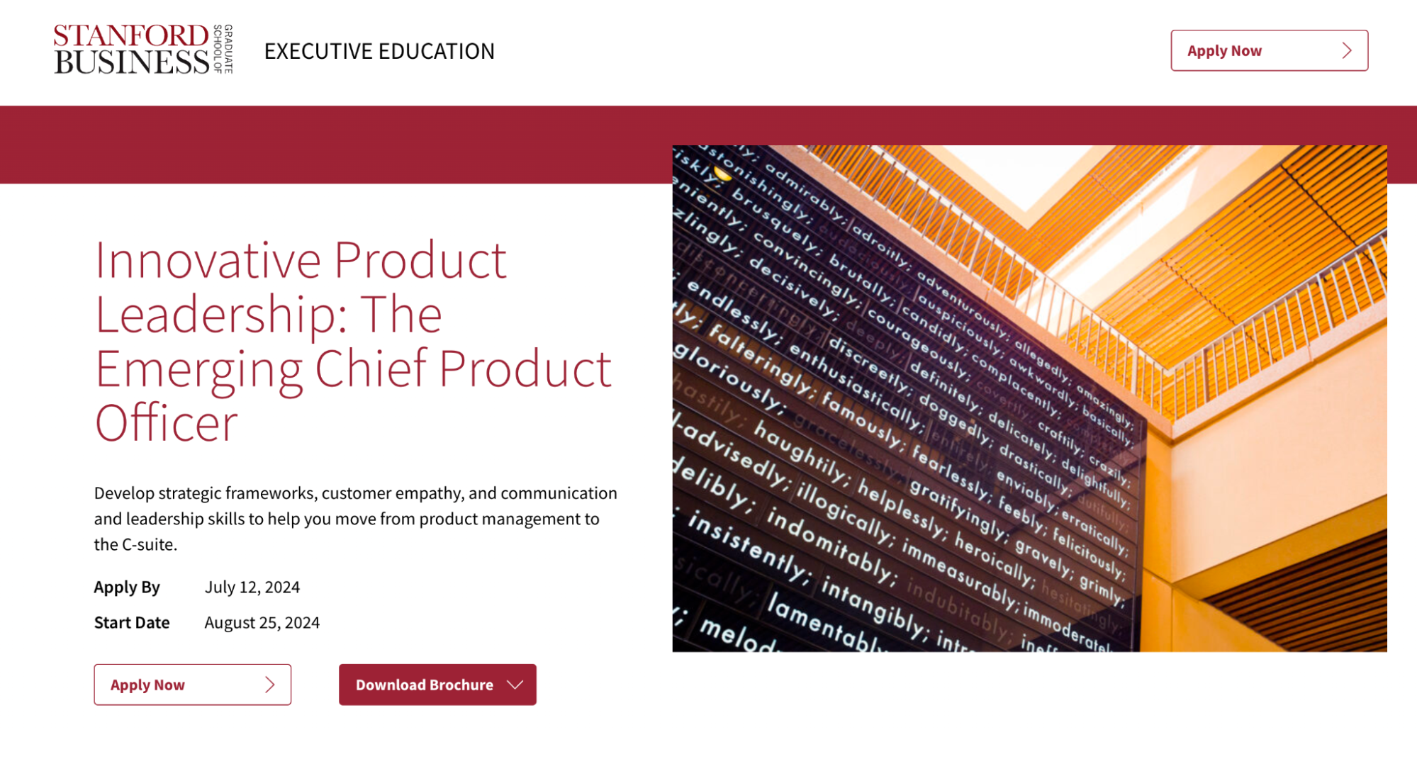 Stanford University runs various courses for product managers and business owners. This course is focussed on seasoned product managers. It will help you develop strategic frameworks, customer empathy, and communication and leadership skills to help you move from product management to the C-suite (Chief Product Officer).
