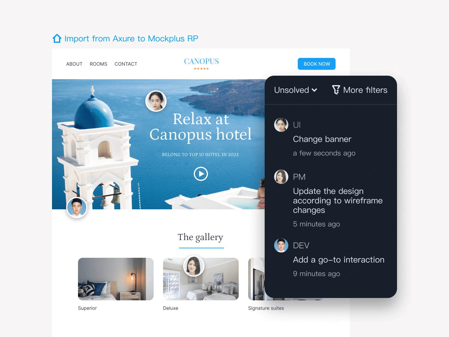 Mockplus RP fully converts your Axure details, down to super small layers and interactions, giving you total freedom to move to the next step, like:
