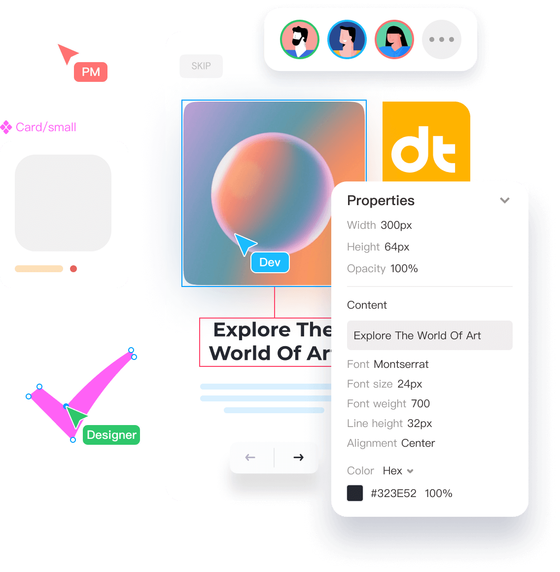 Mockplus DT, a web-based design tool, allows multiple users to co-create on the same project simultaneously, ensuring a seamless collaborative workflow.
