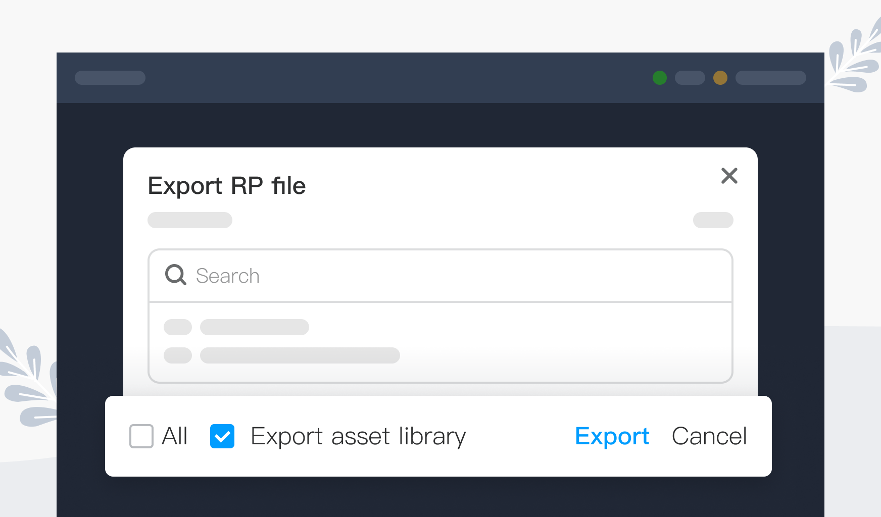 When exporting RP files, you can now select Export asset library to export your asset library together.