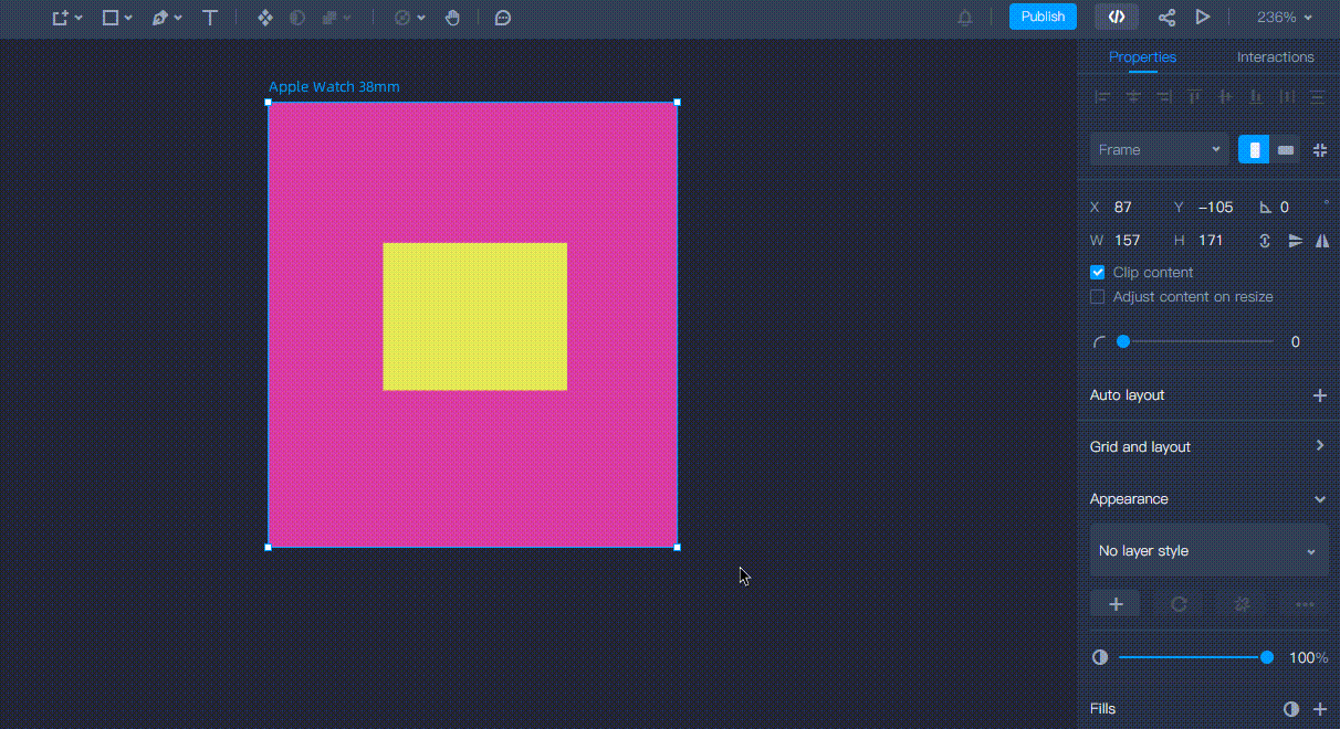 To allow you to better control how inner layers behave when you resize the frame, a new feature called "Adjust content on size" is now available on the right panel. Simply toggle the option to automatically adapt or maintain the original position of your content as you resize the frame.