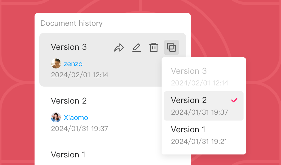 While working on a product requirement document with your team, there are often some situations where you and your teammates need to review and compare two historical versions to track differences or undo some accidental deletion or changes.