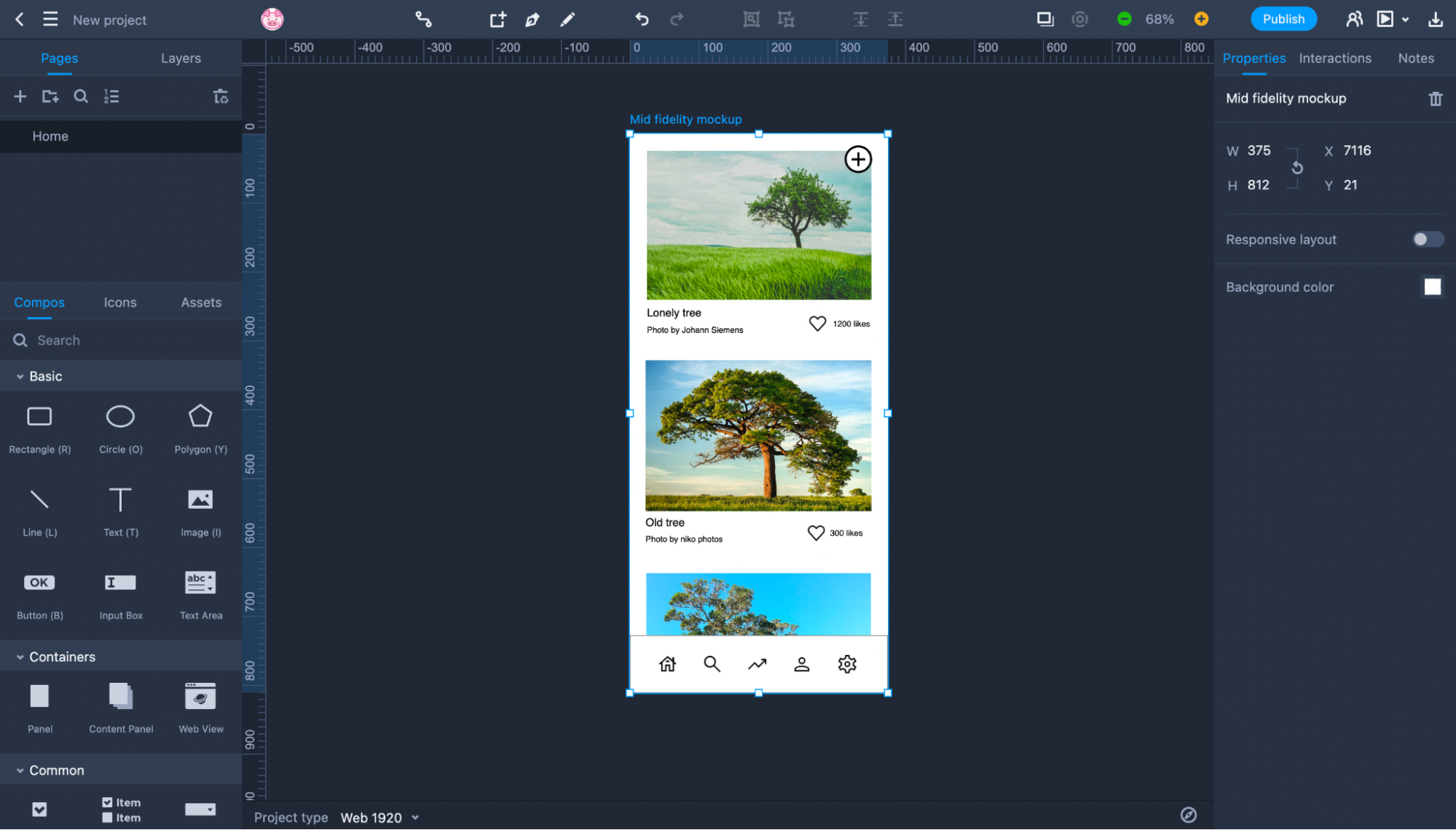 Mid-fidelity mockup of the photo app created using Mockplus RP. Image by Nick Babich.