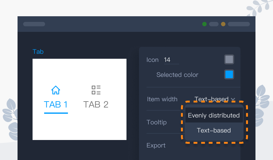 Components such as Tab Bar are frequently used widgets in web and mobile app design and prototyping. Previously, the item width of the Tab Bar was evenly distributed, which worked well in common cases.