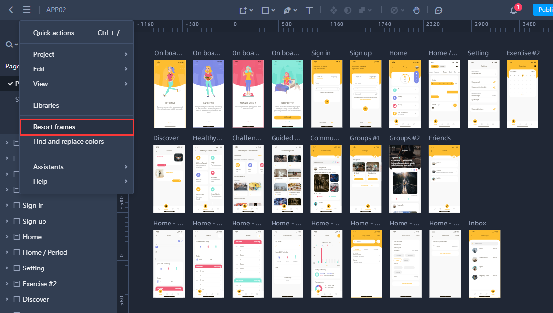 When dealing with numerous frames scattered across the canvas, finding an efficient way to organize and manage them can significantly save time and effort. To enhance the workflow for our valued users, we've added a new option, "Resort frames," to the main menus.
