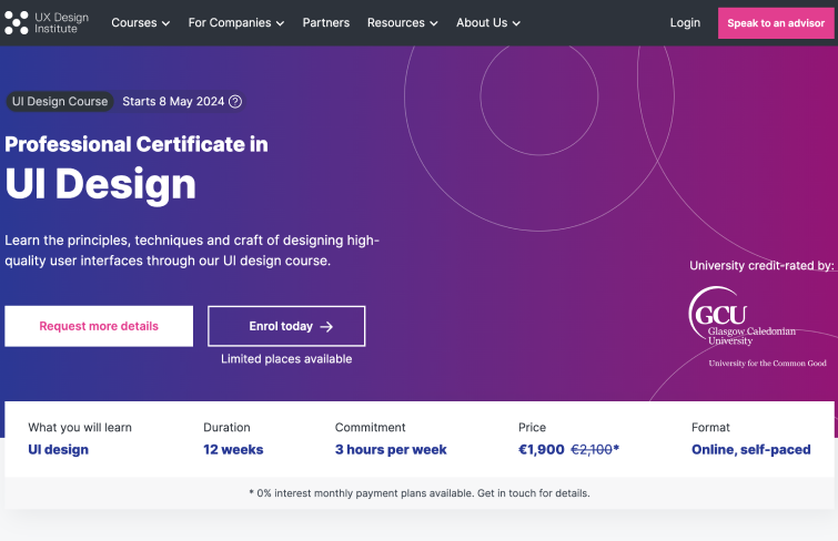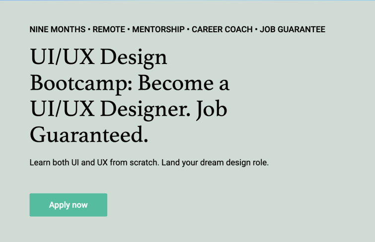 You don’t need a background in design or tech as this course is designed to take you from complete beginner to job-ready. Subjects covered during the nine months of the UI Design Program include the Fundamentals of UI Design, User Research, Wireframing and Prototyping, Visual Design, Tools, and Responsive and Interaction Design, leaving them with a fully-rounded skill set upon course completion. This course also comes with a job guarantee. It promises you to land a job within 6 months of graduation or they will refund your tuition.