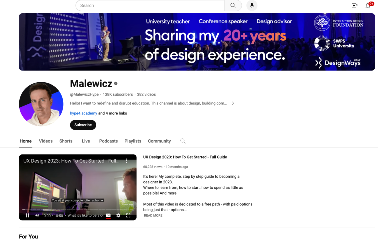 Malewicz is a top-tier YouTube channel dedicated to UI/UX design, offering an array of valuable insights for designers and developers seeking skill enhancement. With an extensive collection of tutorials, tips, and best practices, Malewicz caters to both beginners and seasoned professionals alike. The channel stands out for its high-quality content and consistent updates, ensuring viewers receive up-to-date information on UI/UX design. Hosted by a knowledgeable expert, the videos are well-produced and easily comprehensible, making learning a breeze.