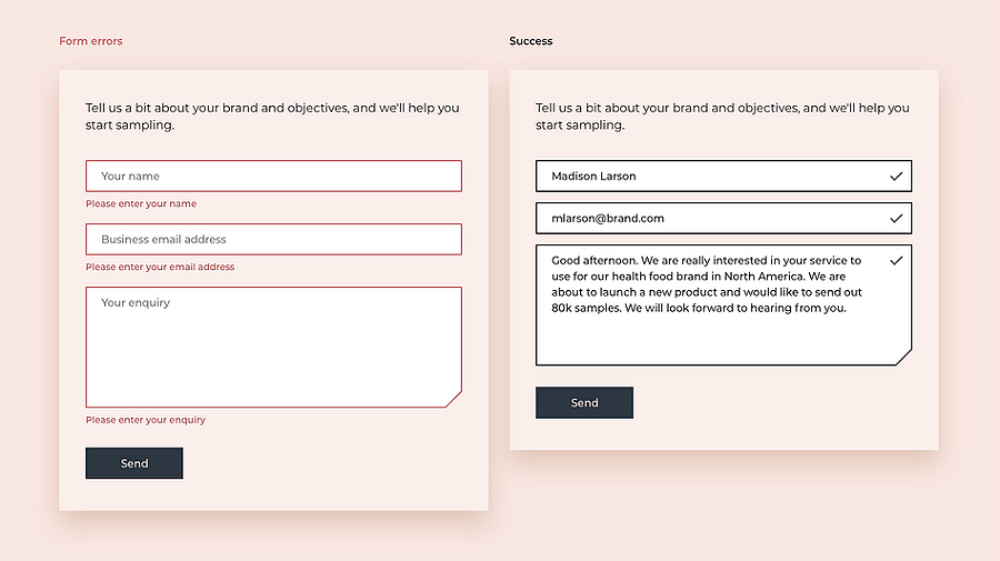 A form error and success example from Dribbble