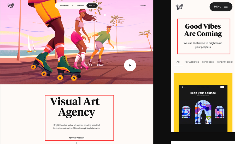 A visual hierarchy design example made with a split screen a layout