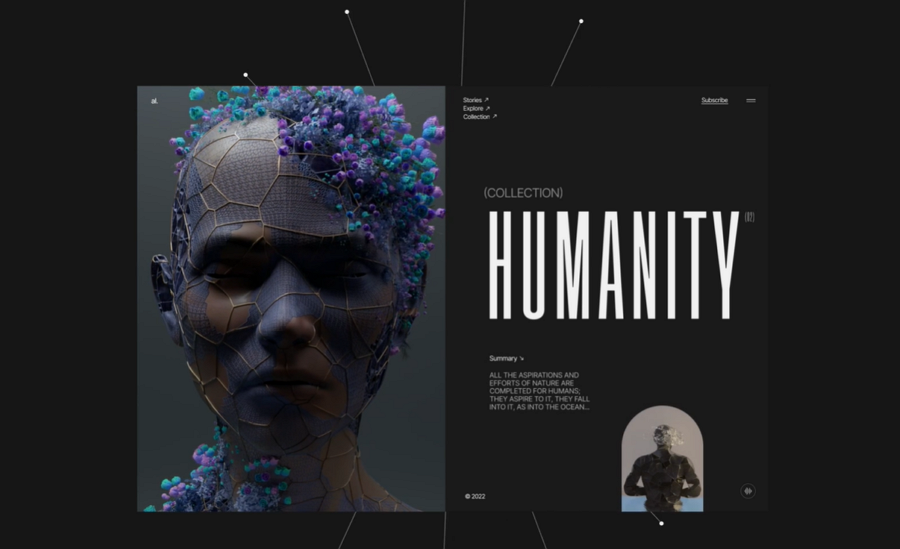 Let's use the humanity website concept below as an example. To align the interface with a futuristic style, designers opt for a straightforward and bold typography to establish a cohesive brand impression.