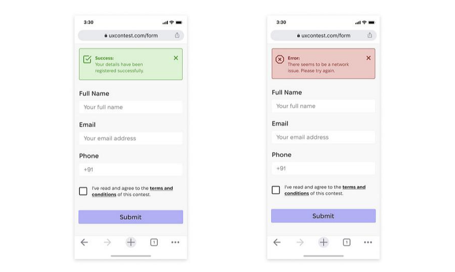 Every time the user performs an action, the interface should promptly respond to them and give clear feedback visually or literally. Never let them wait or guess, because this will cause anxiety and frustration, perhaps, eventually forcing them to leave your website soon.