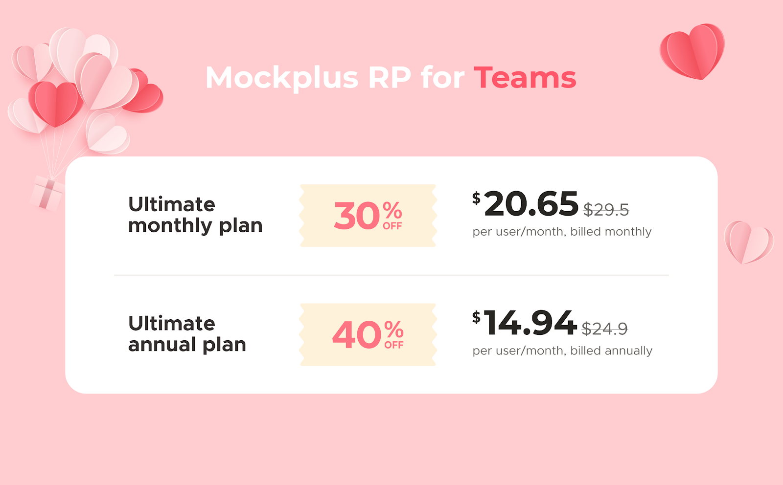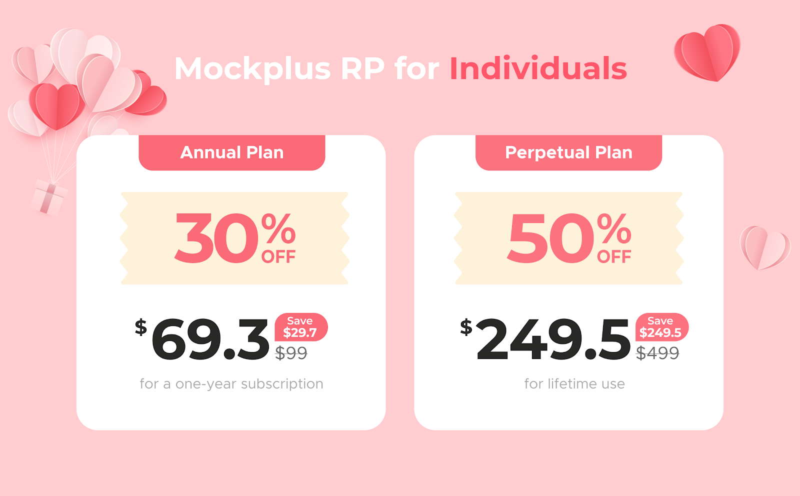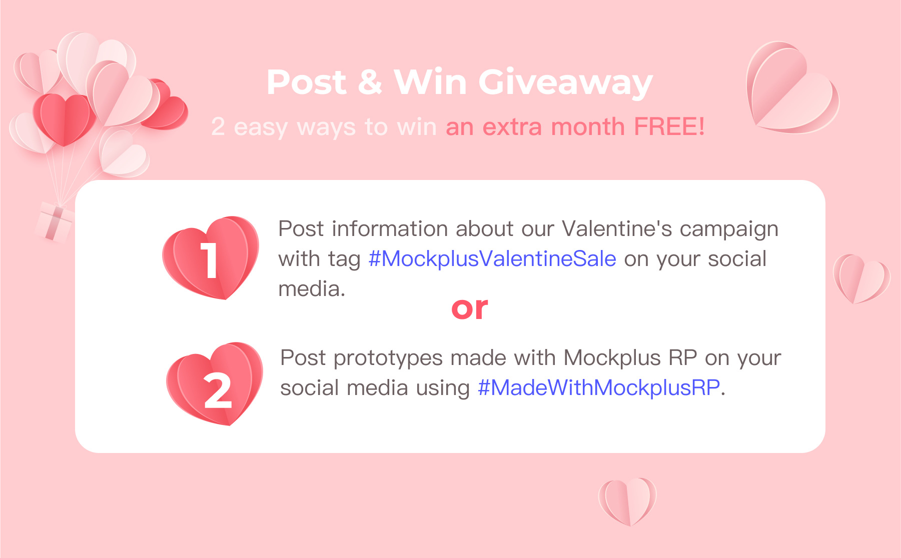 Moreover, anyone who posts information about our Valentine's campaign or post prototypes made with Mockplus RP on their social media accounts will get an extra month FREE! Join now >>