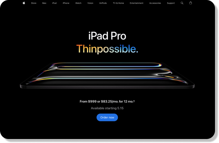 When you visit an Apple's landing page, the message is unmistakable regarding what they aim to sell. The headline is precise and to the point, providing clear insight into the content, and it also utilizes high-quality imagery to showcase their offerings, ensures it's aesthetically pleasing.