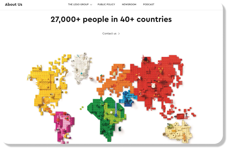 While LEGO's core product is toys, the primary focus of their About Us page targets parents, who are typically the primary decision-makers when it comes to purchases. The page succinctly outlines LEGO's history in a single sentence, with additional links provided for visitors interested in delving deeper into the brand's extensive timeline.