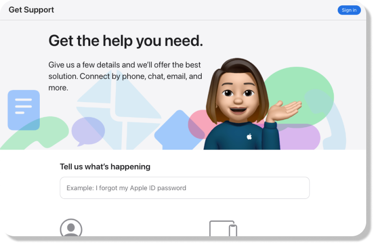 The design of their Contact Us page is straightforward yet efficient, encouraging users to log in for expedited assistance. Apple's support strategy revolves around customization tailored to users' specific products and devices.