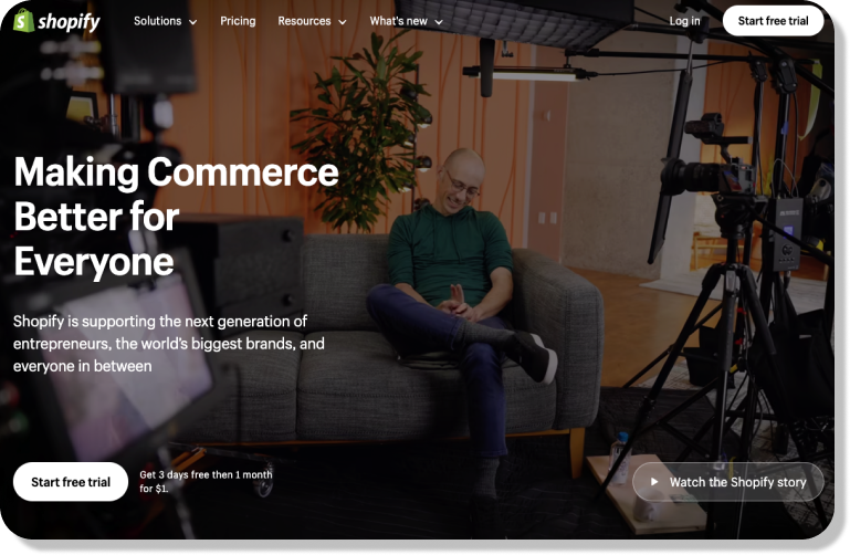 Shopify's homepage is a good example of effective homepage. When you land on it, you're greeted with a captivating headline and subheadline that immediately convey the platform's unique value proposition. Additionally, Shopify's homepage design features a captivating hero video paired with eye-catching call-to-action (CTA) buttons, encouraging visitors to either sign up for a free trial or watch the full video.
