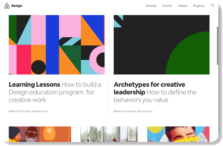 AirBnB design page showcases a timeless blog layout, incorporating sections for featured images, titles, and concise information or category for each post. The fonts chosen are crisp and easy on the eyes, significantly enhancing the reading experience.